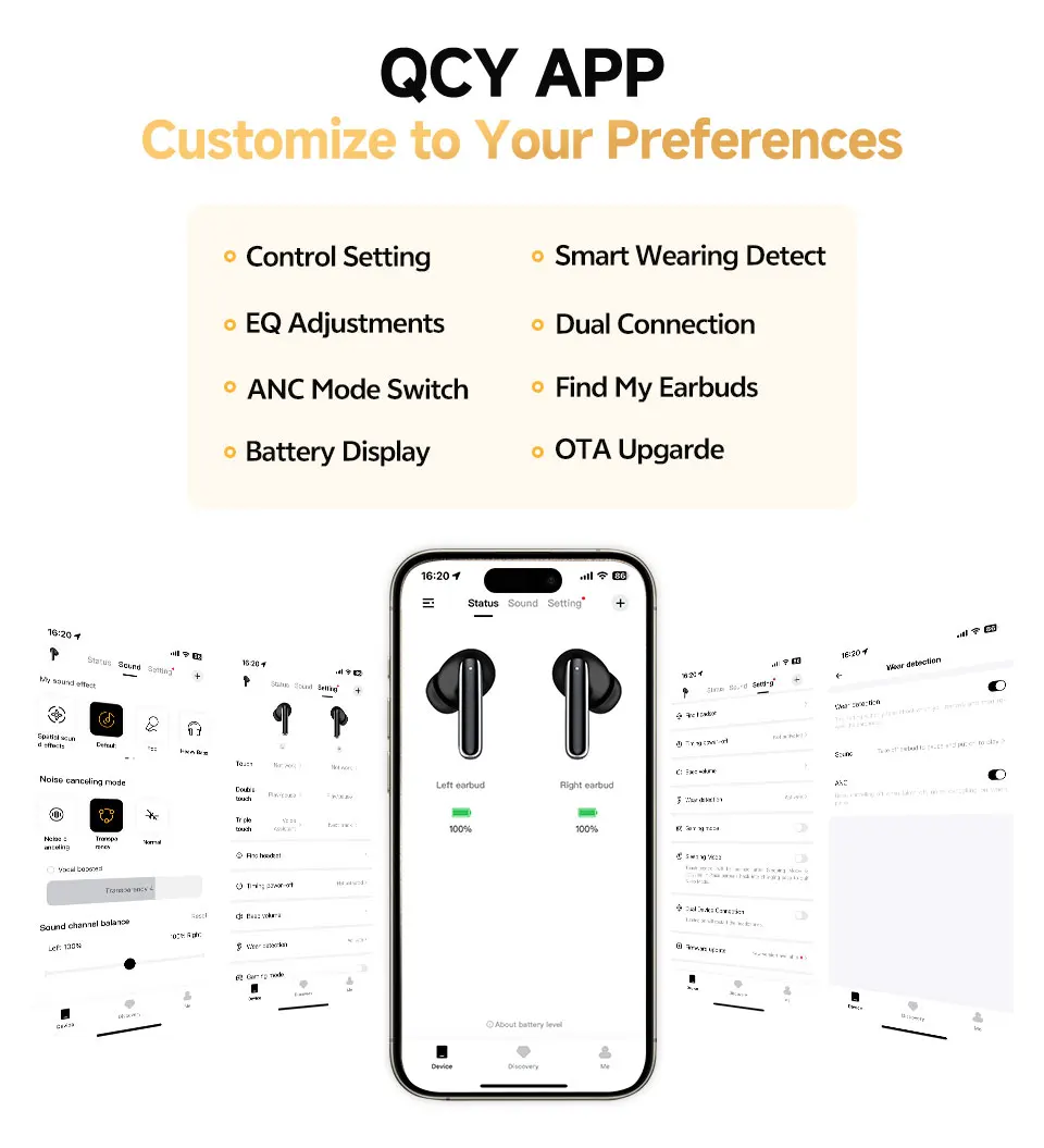 4 ANC Noise Cancelling Modes -There are 4 noise-canceling modes for different surroundings, and three adjustable levels for each mode for your choice.
