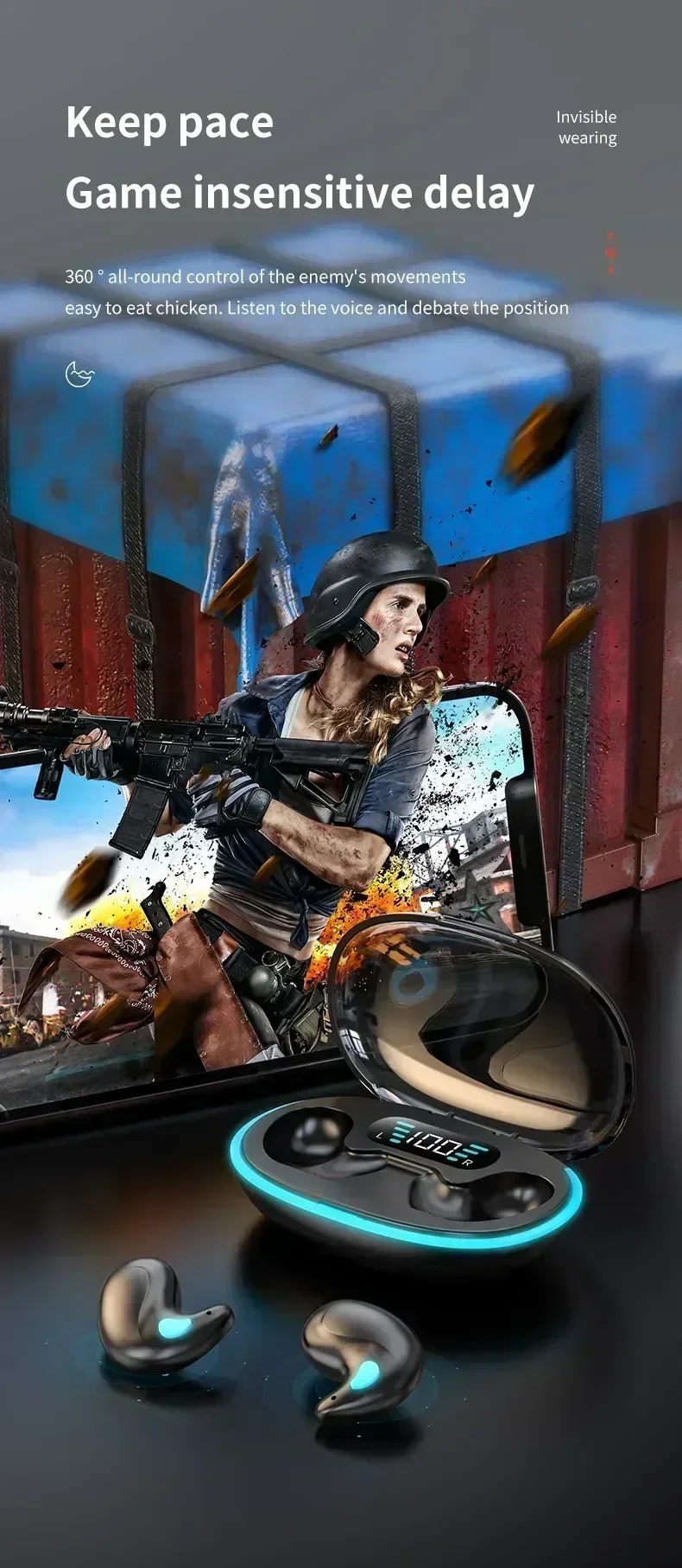 TWS Noise Reduction Earphones for Sport Game Sleep - Bluetooth Earbuds for all smartphones